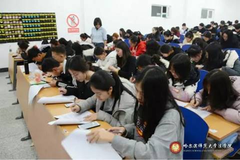为了进一步激发广大青年学子学理论、用理论的热情,以火热的学习氛围和坚实的政治理论基础贯彻落实党的十九大精神,法学院于3月8日晚在崇师楼D504及、A504教室开展十九大精神学习知识问答活动。辅导员卢范一妮老师监考,法学院2016级、2017级全体学生参加。