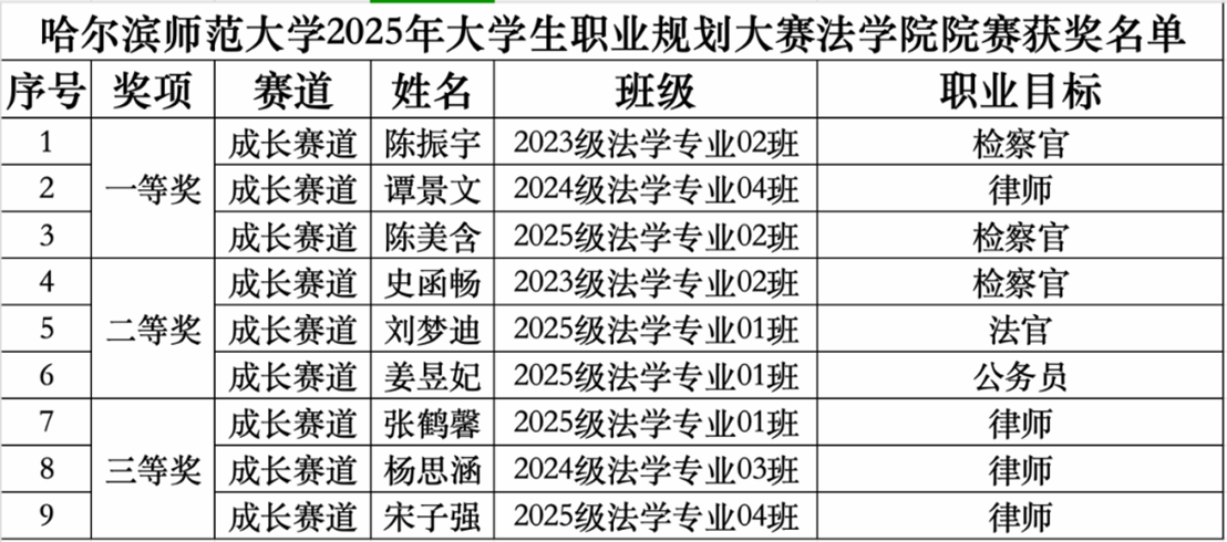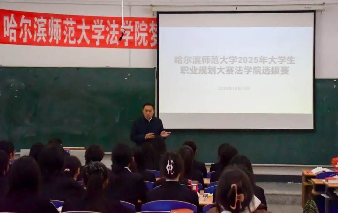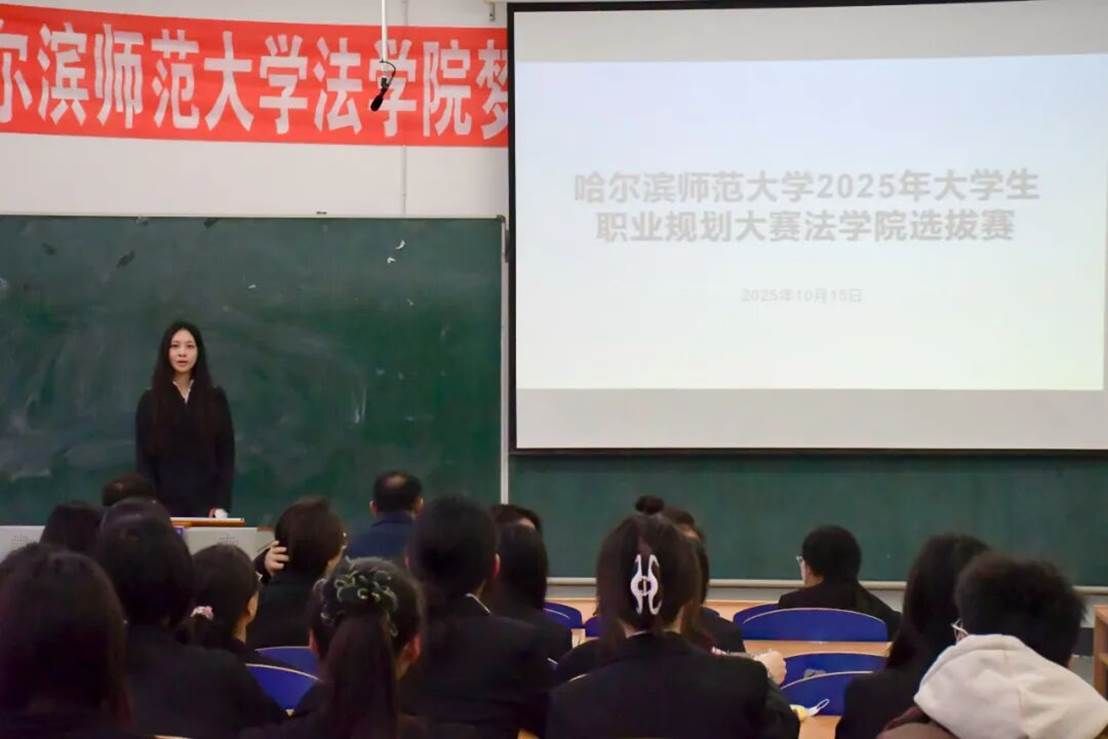 为深入贯彻落实习近平总书记关于高质量就业的重要论述和重要讲话精神,加强大学生生涯教育和就业指导,增强大学生职业规划意识,落实立德树人根本任务,强化就业育人实效,促进高质量充分就业,法学院于2025年10月15日下午在崇师楼D505开展哈尔滨师范大学2025年大学生职业规划大赛法学院院赛。法学院党委副书记王敬国、辅导员孙振轩、徐鑫怡出席本次比赛。