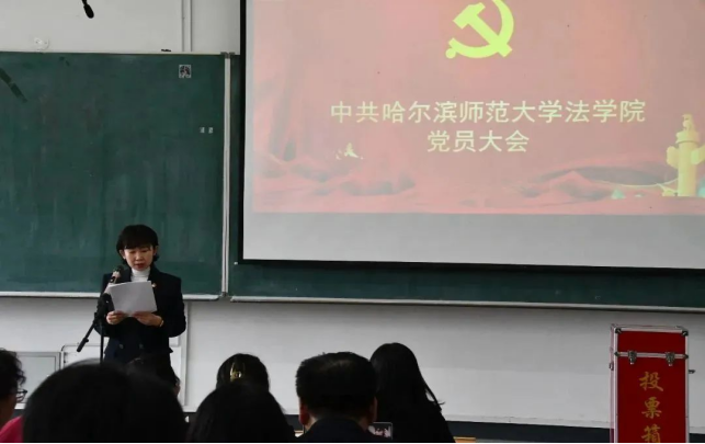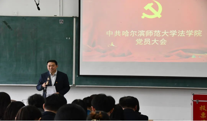 2023年4月19日下午,中共哈尔滨师范大学法学院党员大会在崇师楼D504室成功举行。学院党委副书记王敬国主持会议,学院全体师生党员出席大会。