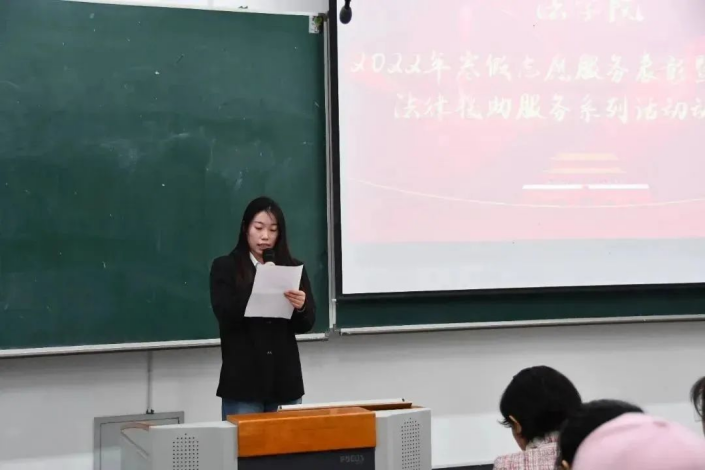 周宏璐宣读了活动获奖同学名单,鼓励大家向优秀典型看齐,继续追求卓越、顽强拼搏,展现勇于担当、昂扬向上的法学院风貌,彰显团结进取、众志成城的法学院力量。