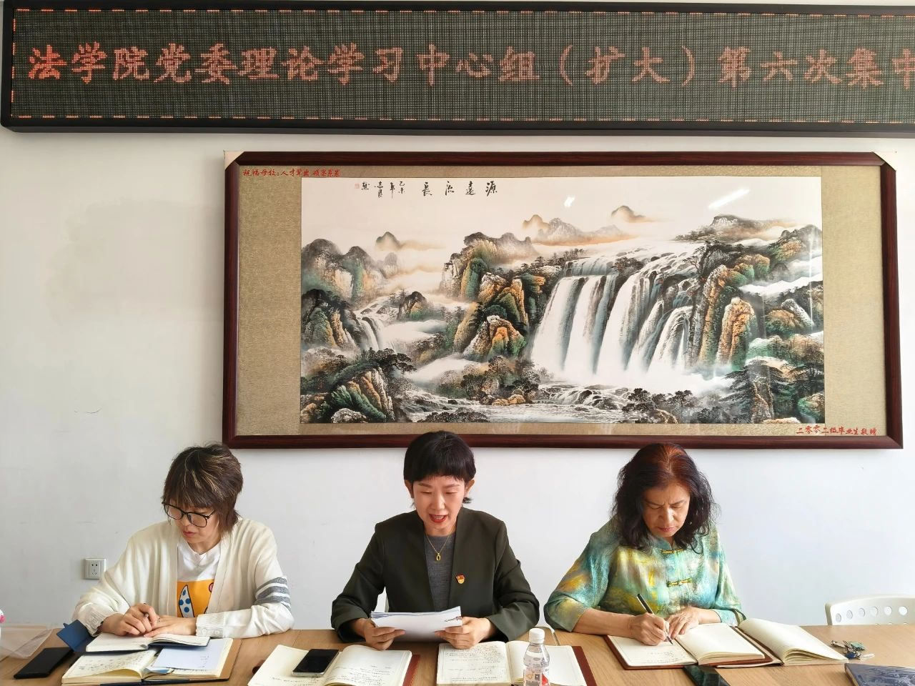 6月11日下午,法学院召开党委理论学习中心组(扩大)第六次集中学习会议,深入学习习近平总书记关于加强党的作风建设的重要论述、中央八项规定及其实施细则精神等重要内容。会议由学院党委书记李晓航主持,党委理论学习中心组成员、全体教职工参加会议。