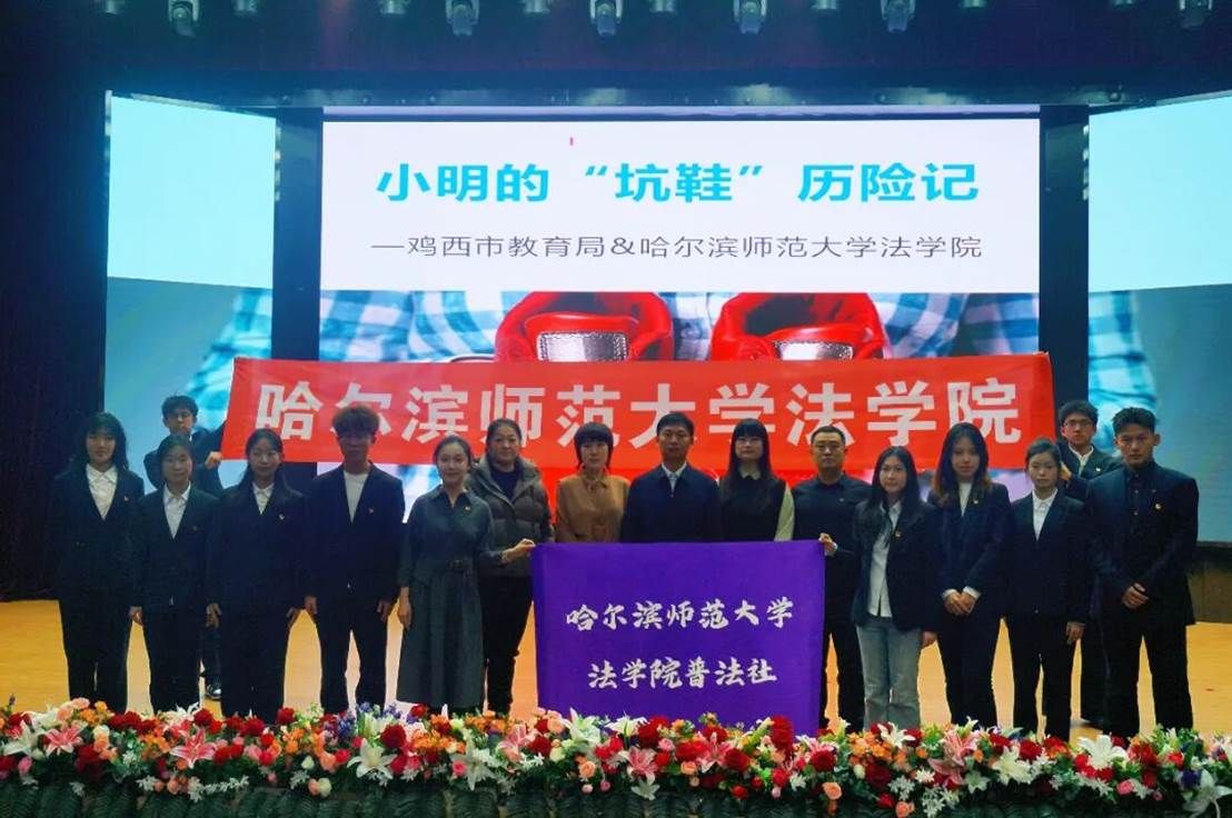 为深入学习贯彻习近平法治思想,深入开展青少年法治宣传教育,进一步营造学法、懂法、知法、用法的校园法治氛围,根据黑龙江省教育厅《青少年法治教育润心行动实施方案(2024-2027年)》规定,11月10日至11日,哈尔滨师范大学法学院对接鸡西市教育局,分别走进鸡西市新兴实验学校与鸡西市职业教育中心,开展了两场丰富多彩的“普法进校园”活动,为同学们提供生动有趣的法律知识“小课堂”。哈尔滨师范大学法学院副院长周宏璐、鸡西市教育局副局长任凤铭、鸡西市教育局政策法规科出席本次活动。